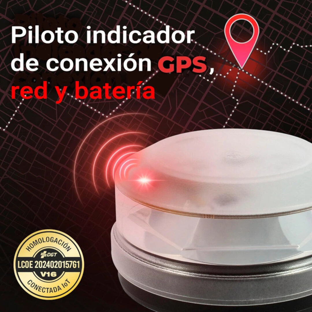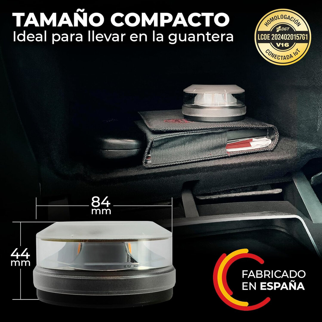 La baliza V16 proporciona seguridad al no ser necesario salir del vehículo, la visibilidad aumenta enormemente y su eficacia se multiplica al estar conectada a la plataforma DGT 3.0 prevista para emergencias en la vía.