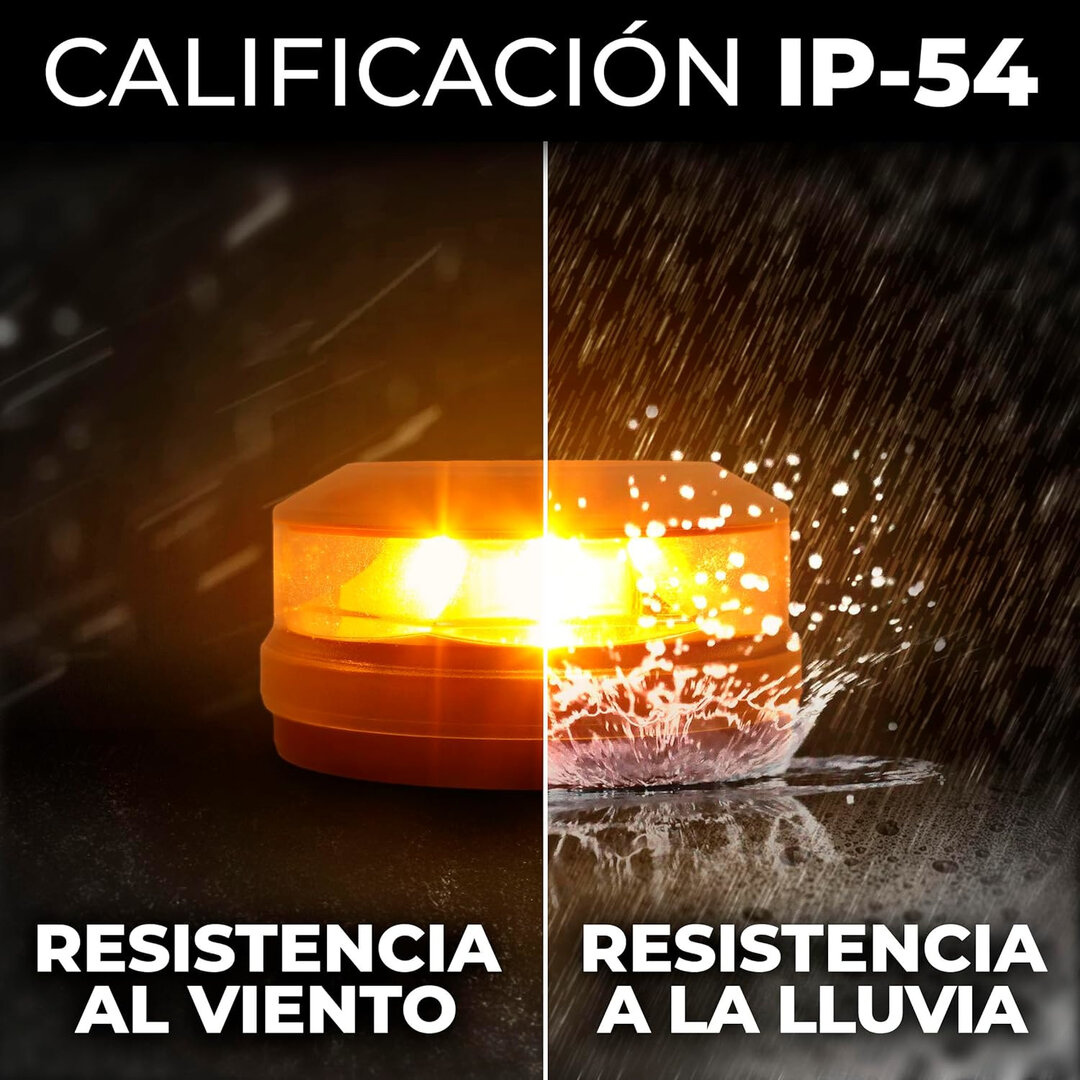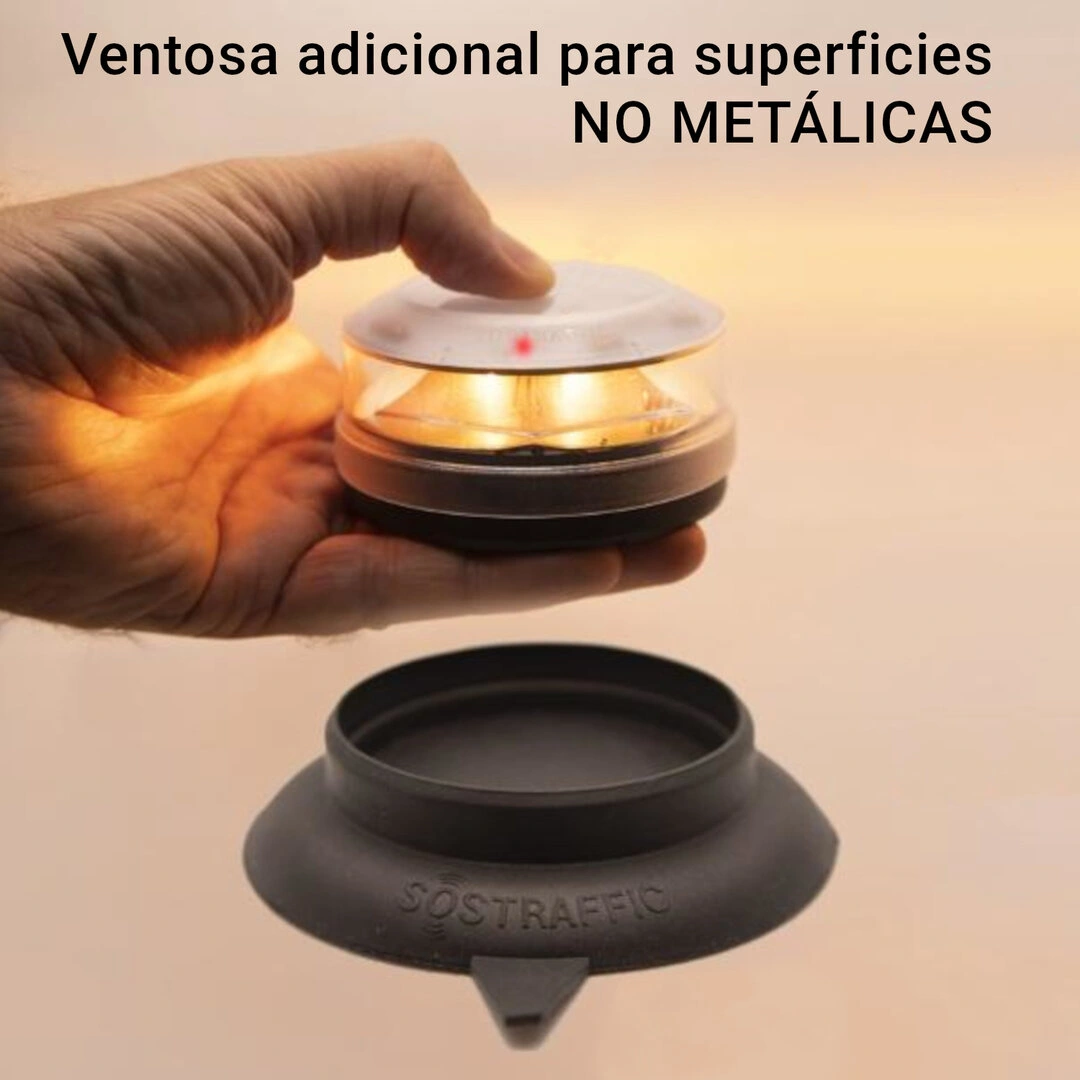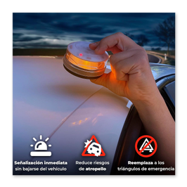 En caso de un incidente, para señalizar el vehículo, basta con encender la baliza presionando el pulsador y colocarla en el vehículo mediante los imanes que incorpora. Para superficies de cristal, plástico, aluminio, etc., puede utilizarse la ventosa disponible como accesorio. La baliza emite una luz destellante visible a varios kilómetros. Nuestra experiencia en iluminación de emergencia nos permite utilizar una tecnología que hace visible la baliza desde varios kilómetros, incluso si es de día.